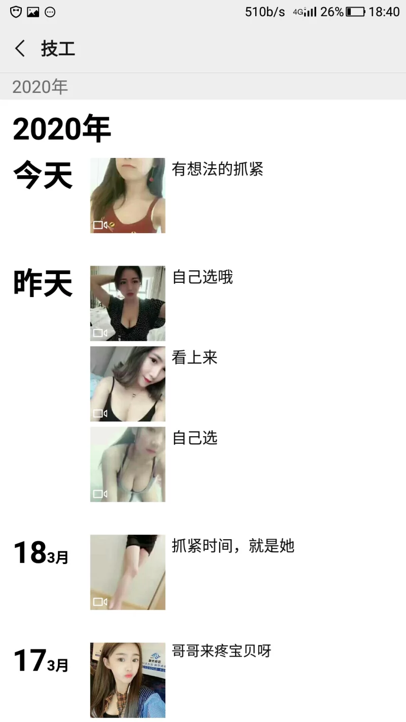 综合评价:她朋友圈有其他女人,可多了,隔几天更新一次,什么类型的都有,她自己有地方,上门也可以